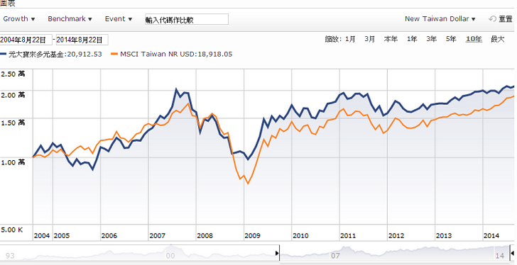 ▼元大寶來多元基金10年績效圖