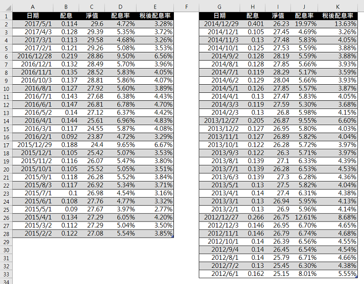 這檔ETF是每月配息,年化的配息率也還算不錯,平均都有5%。雖然台灣的投資者購買美國發行的ETF配息必須預扣30%的稅金,不過這檔ETF投資標的為全球,是有機會可以退稅的。即便無法退稅,扣除稅金後的配息率也還可以,表一中的稅後配息率欄位,就是將配息扣除30%之後的年化配息率。