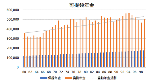圖二:模擬60歲退休,每年保障年金12萬元、變動年金36萬元